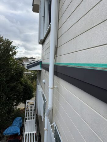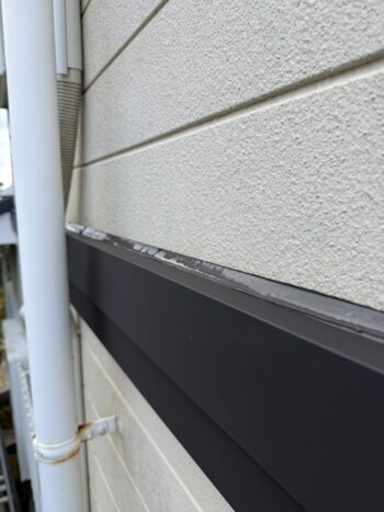 カバーした後の工程になりますが壁と板金の接点に防水材のコーキングを施工します!